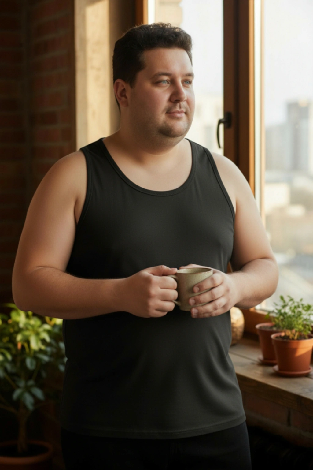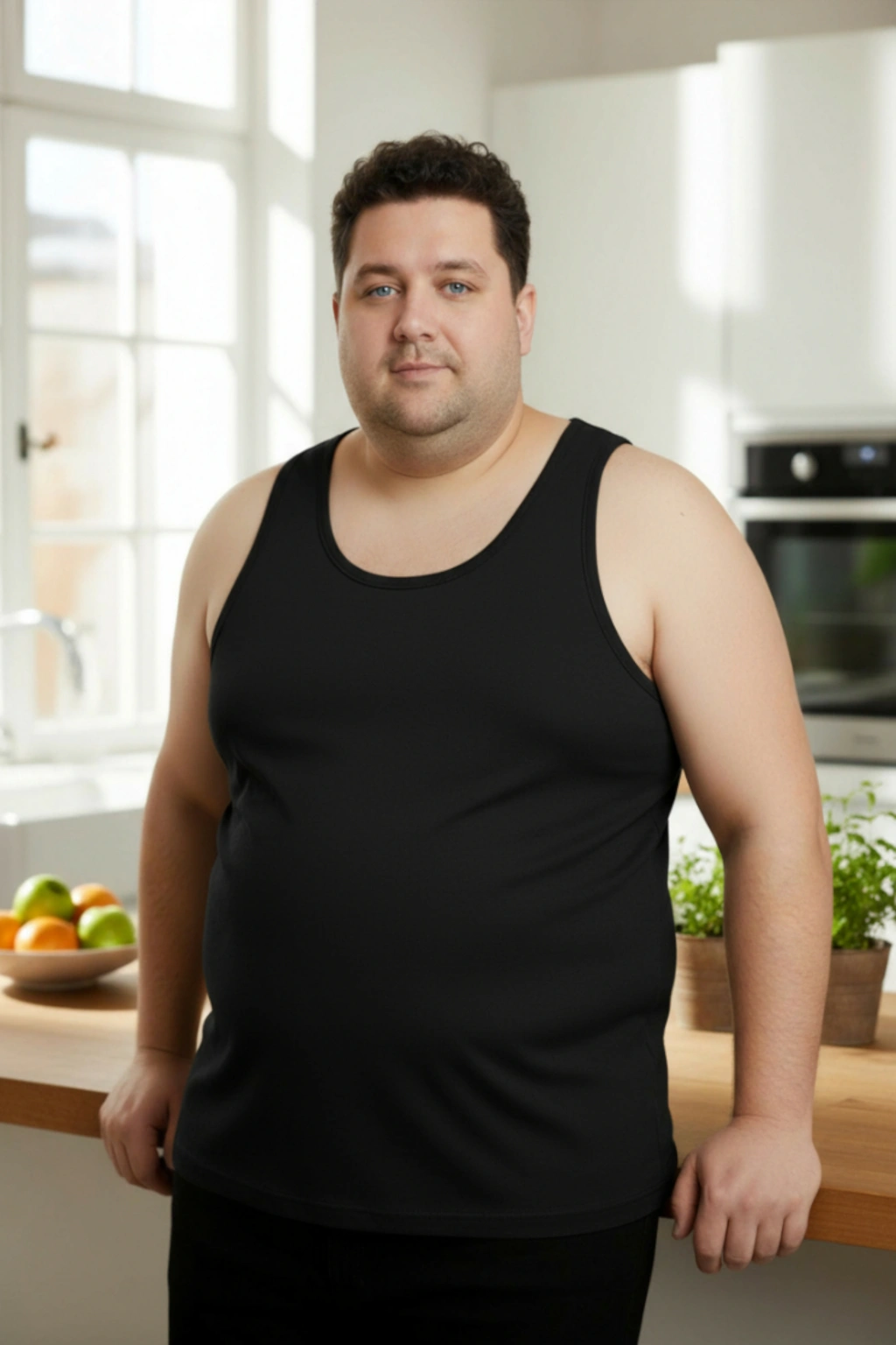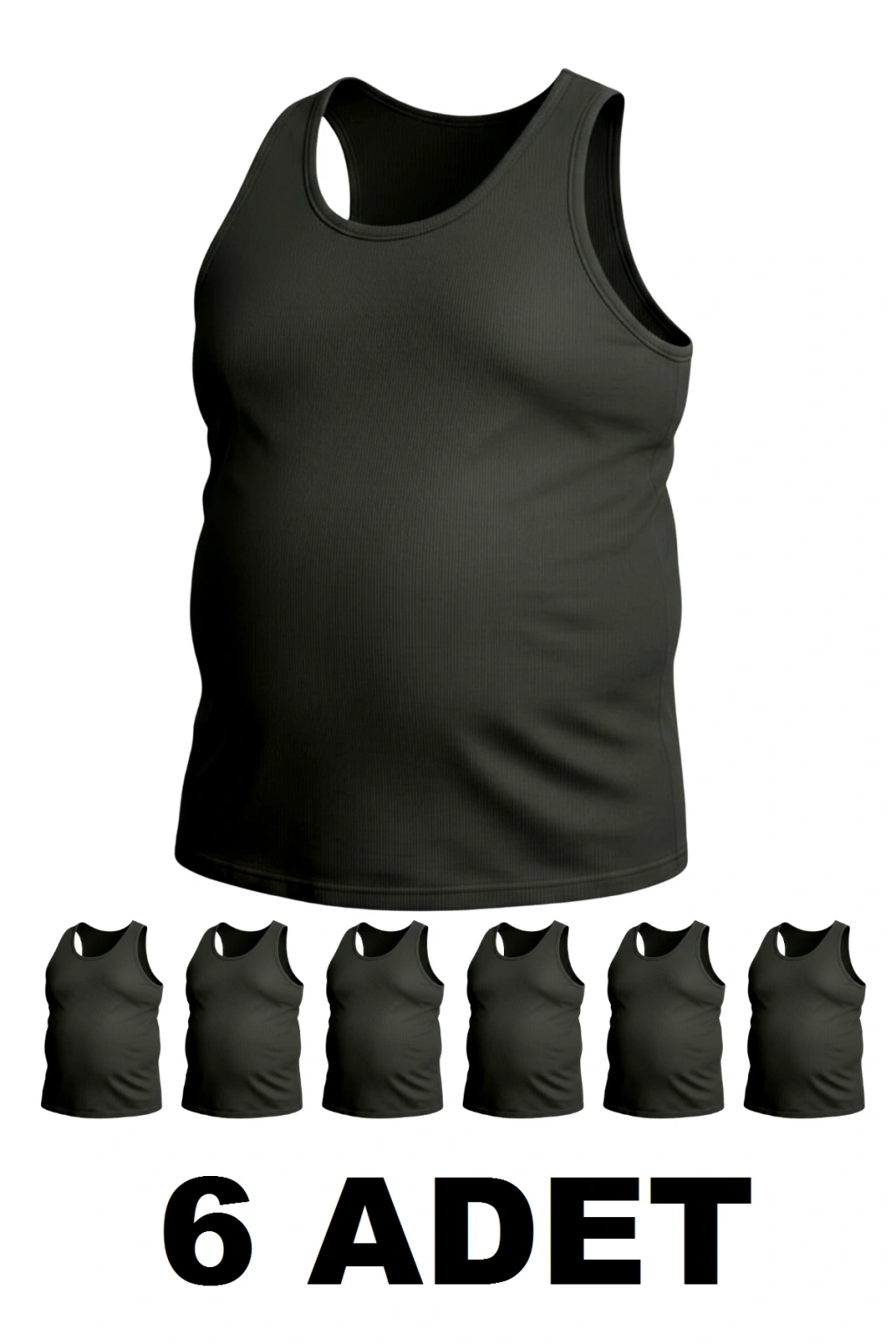 Büyük Beden Pamuklu Erkek Atleti 6'lı Paket - Siyah