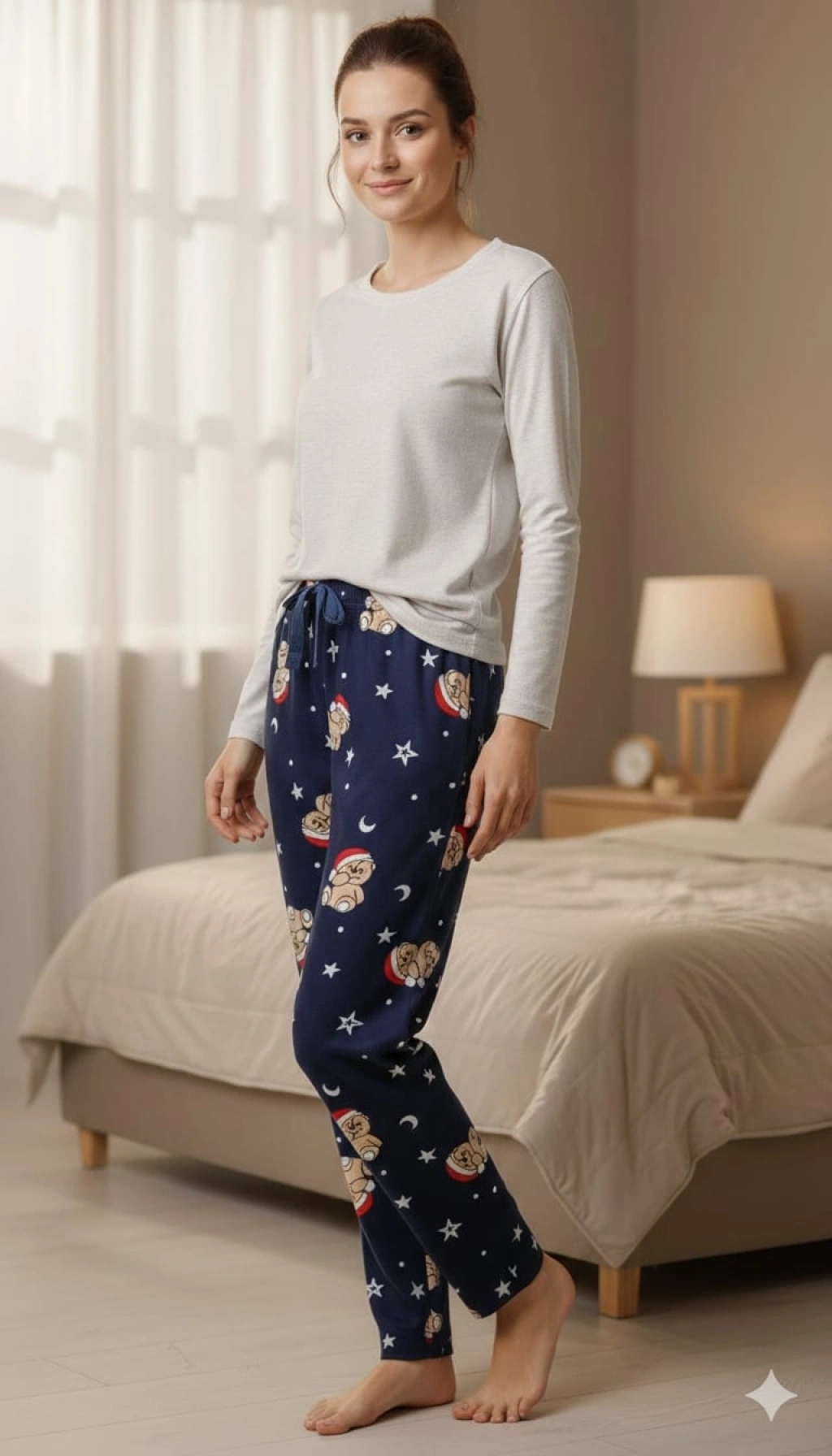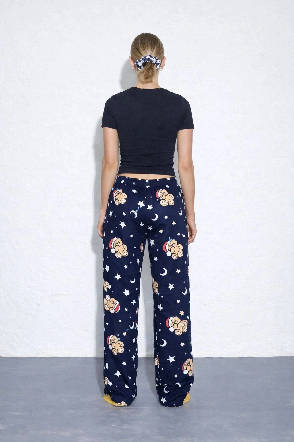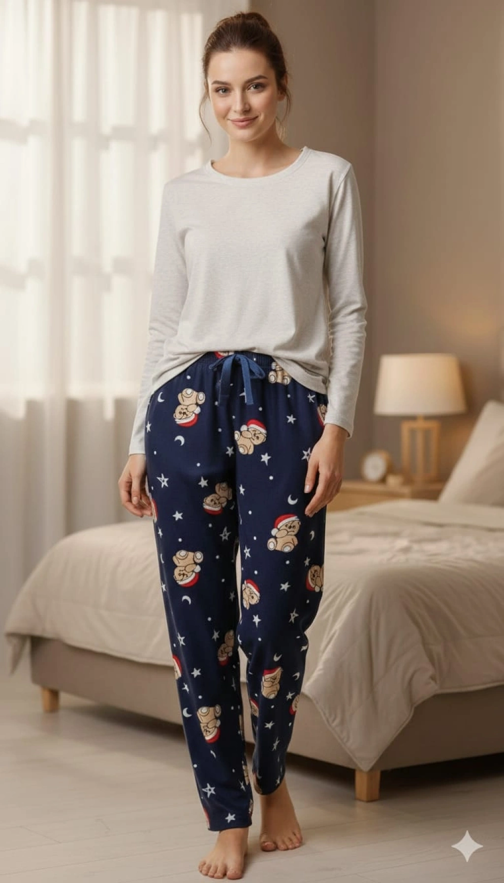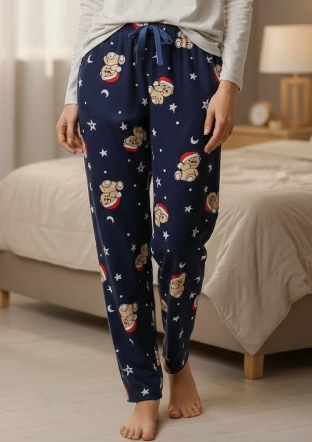 İpeksi Dokulu Süet Pijama Altı Şapkalı Ayıcıklı